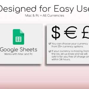 This spreadsheet has a blush pink color palette to make budgeting a little more fun! It comes with simple-to-use instructions to help you get started. Join our growing list of happy customers! We know you will love our products as so many others do. We are here to make things easy for you. If for any reason you are not satisfied with your purchase, just let us know and we will make it right with a full money back guarantee!